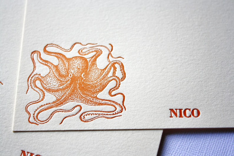 Personalized Letterpress Stationery Octopus Waving Rust - Etsy