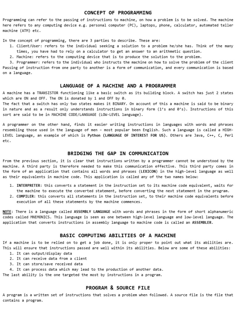 Computer programming Notes | PDF