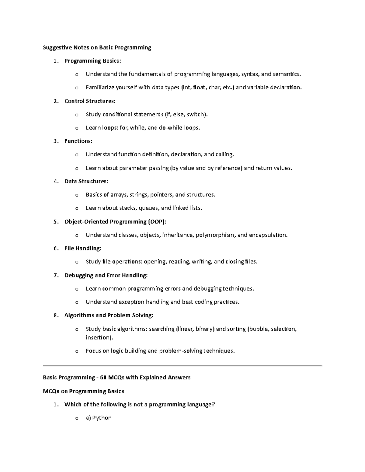 Programming - Short Notes_by cestudy247 | PDF