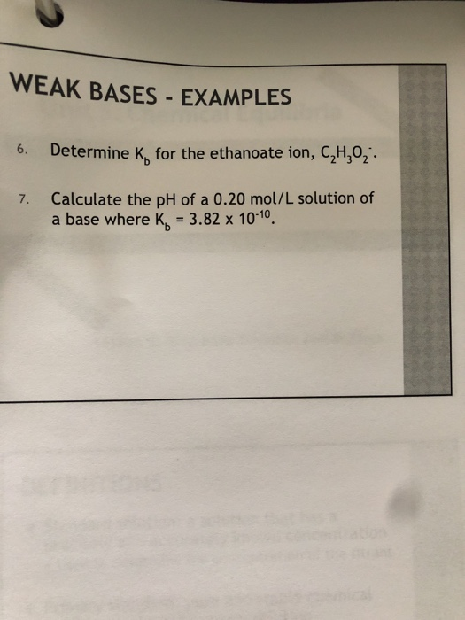 Solved WEAK BASES - EXAMPLES Determine K, for the ethanoate | Chegg.com