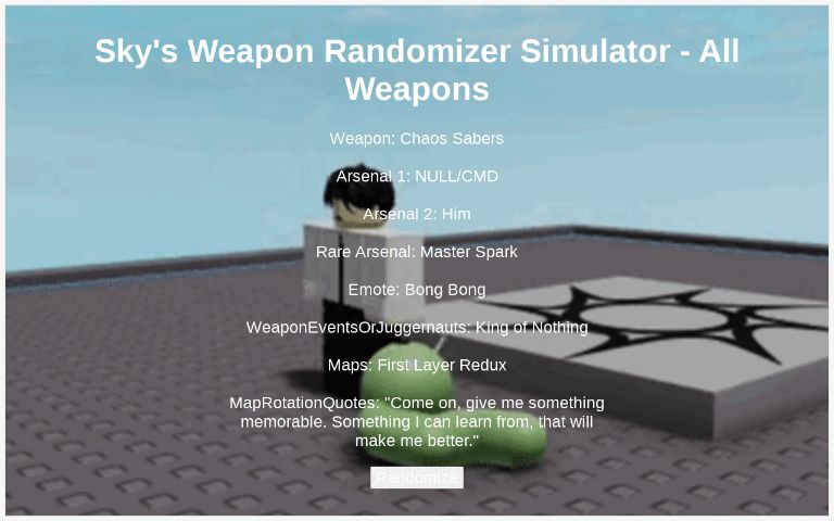 Sky's Weapon Randomizer Simulator - All Weapons ― Perchance Generator