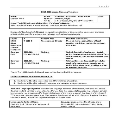 Weather Lesson Plan | PDF | Science Education | Educational Technology