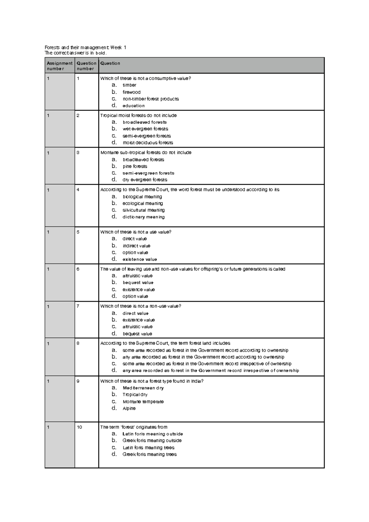 Forests and Their Management: Week 1 Assignment - Studocu