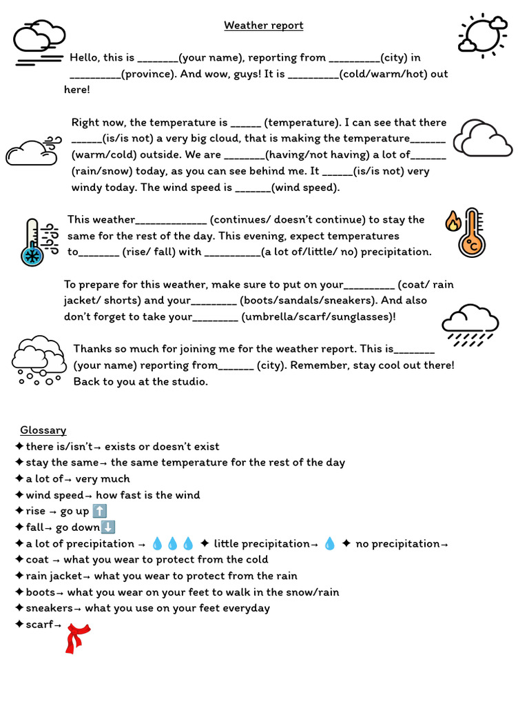 Weather Script Forecast and Report Examples for StudentsMaking English Fun