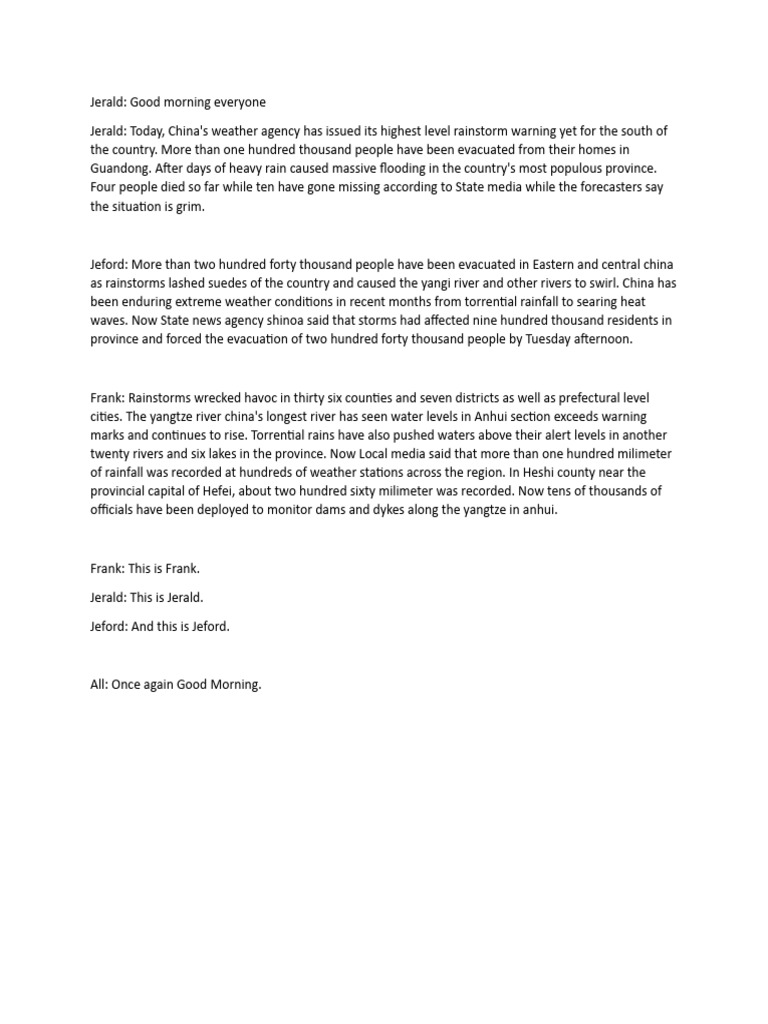 Newscasting Script Sample | PDF | Weather | Weather Forecasting