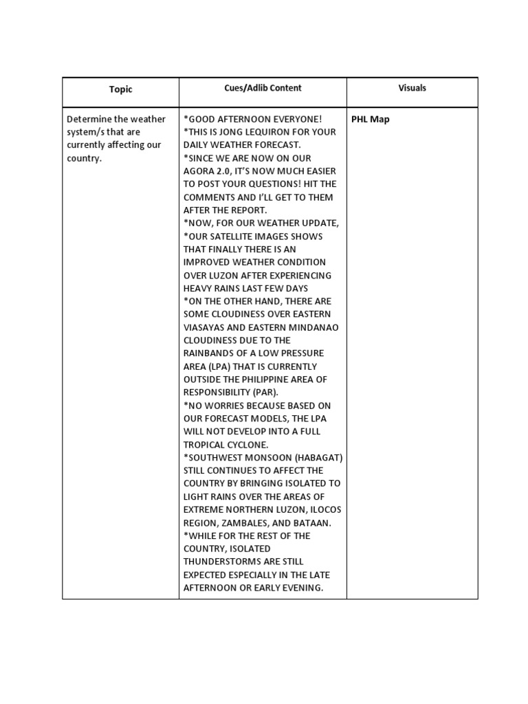 Weather Forecast Script Template | PDF | Language Arts & Discipline ...
