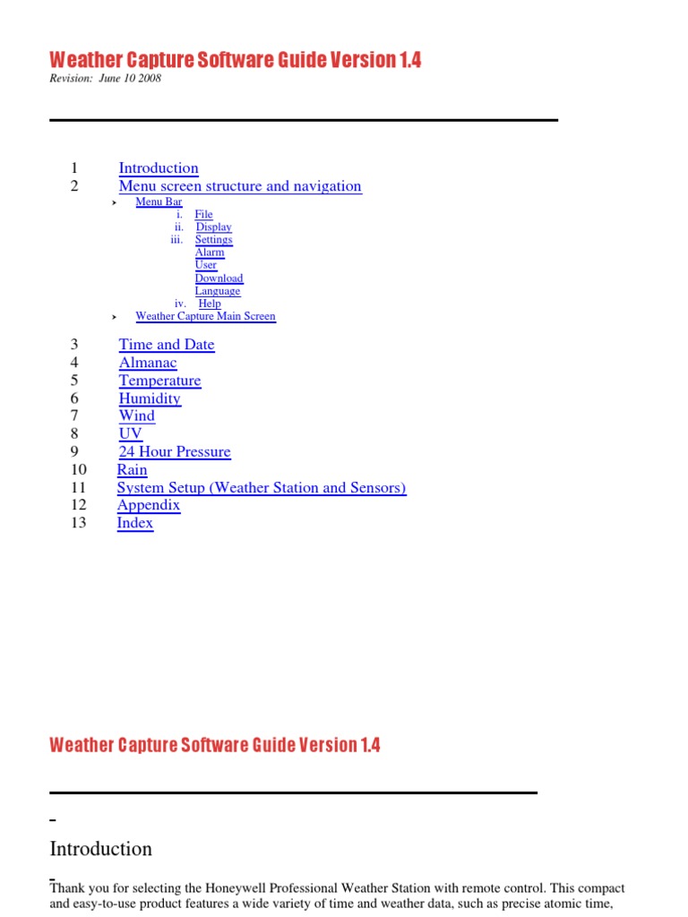 Weather Capture Software Guide Version 1.4: Menu Screen Structure and ...