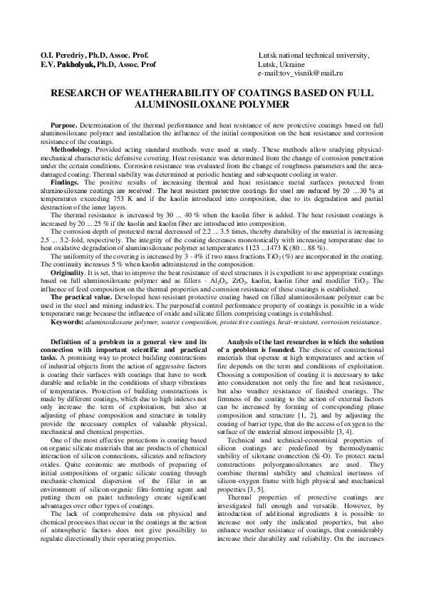 (PDF) RESEARCH OF WEATHERABILITY OF COATINGS BASED ON FULL ...