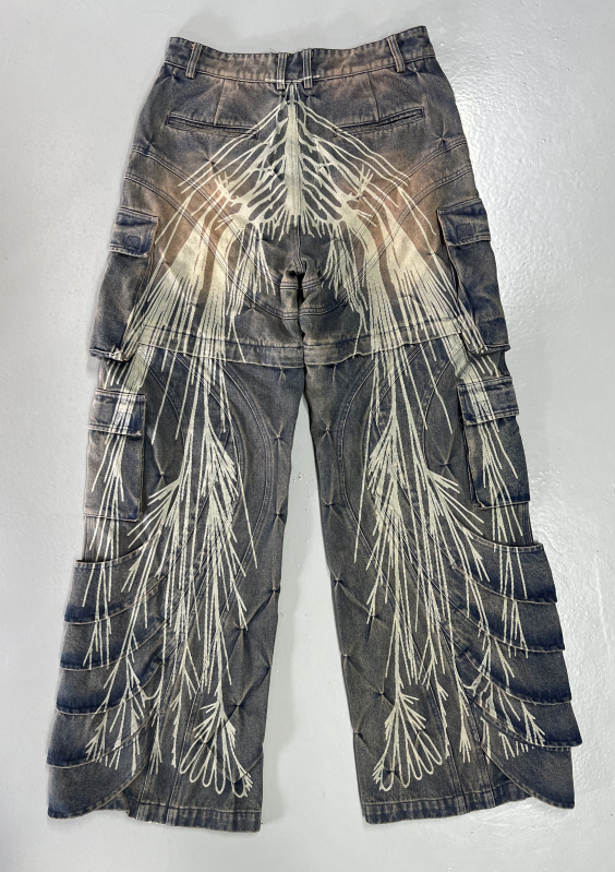 Men's Y2K Grunge Cargo Jeans Vintage Washed Angel Wings Print Multi ...