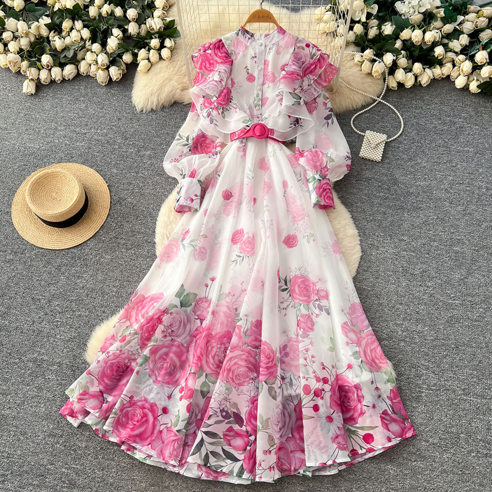 Summer Roman V-Neck Casual Maxi Dress for Women Lantern Sleeve Empire ...