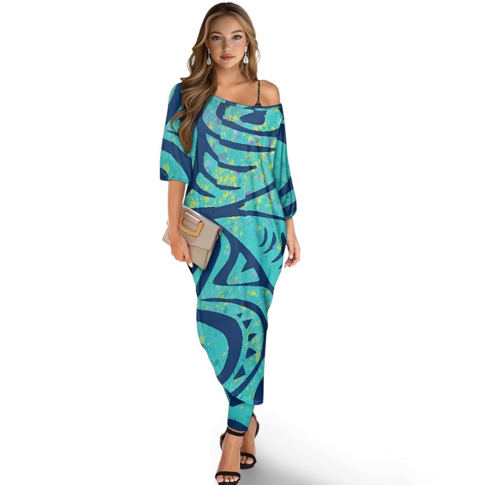 Women's High Quality Loose Off-Shoulder Two-Piece Casual Set Polynesian ...