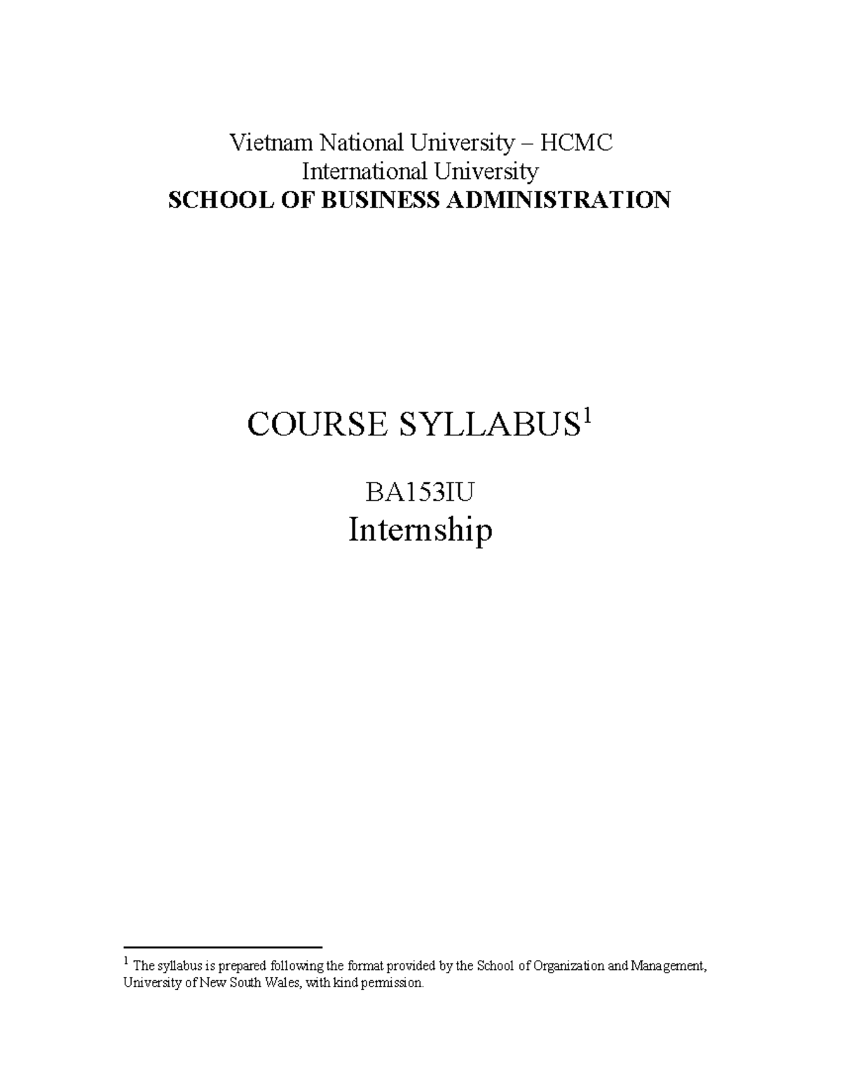 BA153IU Internship 1 Syllabus - VNU International University - Studocu