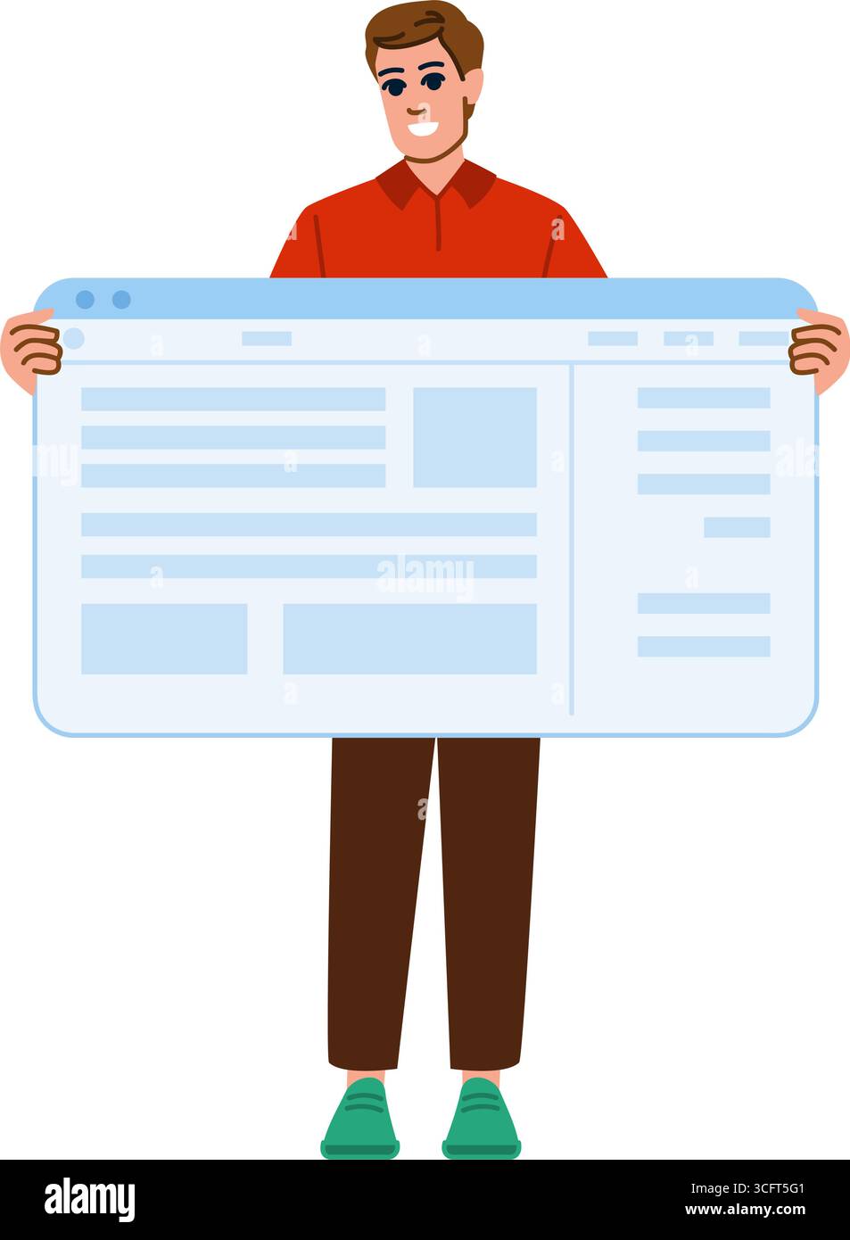 Smiling web developer showing browser window with code and text Stock ...