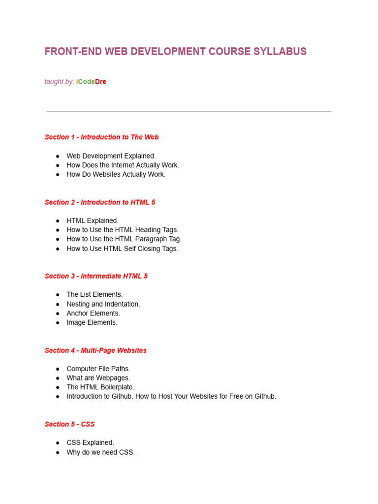 ICodeDre Web Development Course Syllabus | PDF | Java Script | Web Design