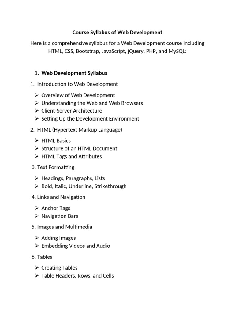 Comprehensive Guide to Web Development Course Syllabus 2024 | Course Hero