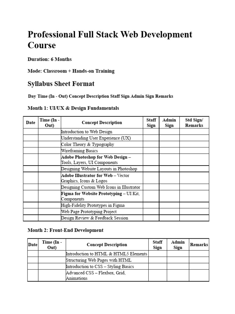 Professional Full Stack Web Development Course syllabus | PDF | Web ...