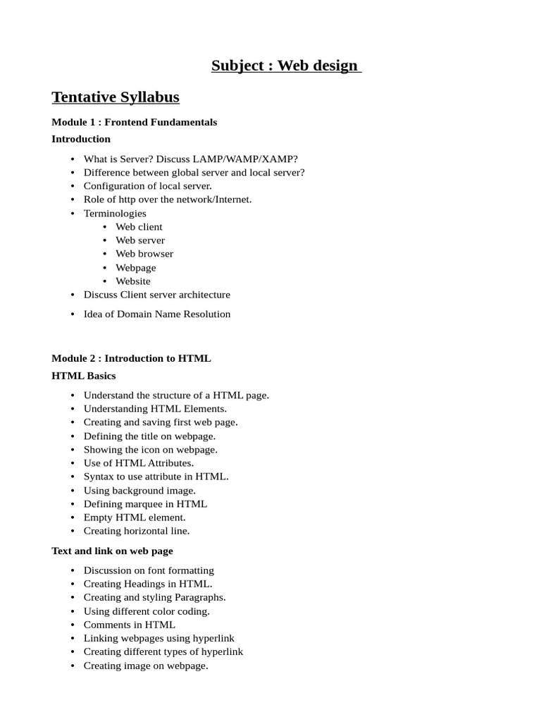 Syllabus for front end web developer course - Session 2021- 22 Page:1 ...