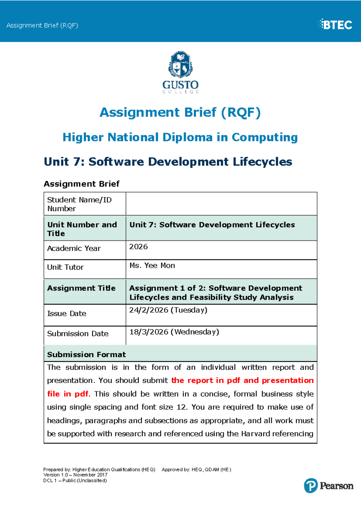 HND Computing Unit 7: Software Development Lifecycles Assignment - Studocu