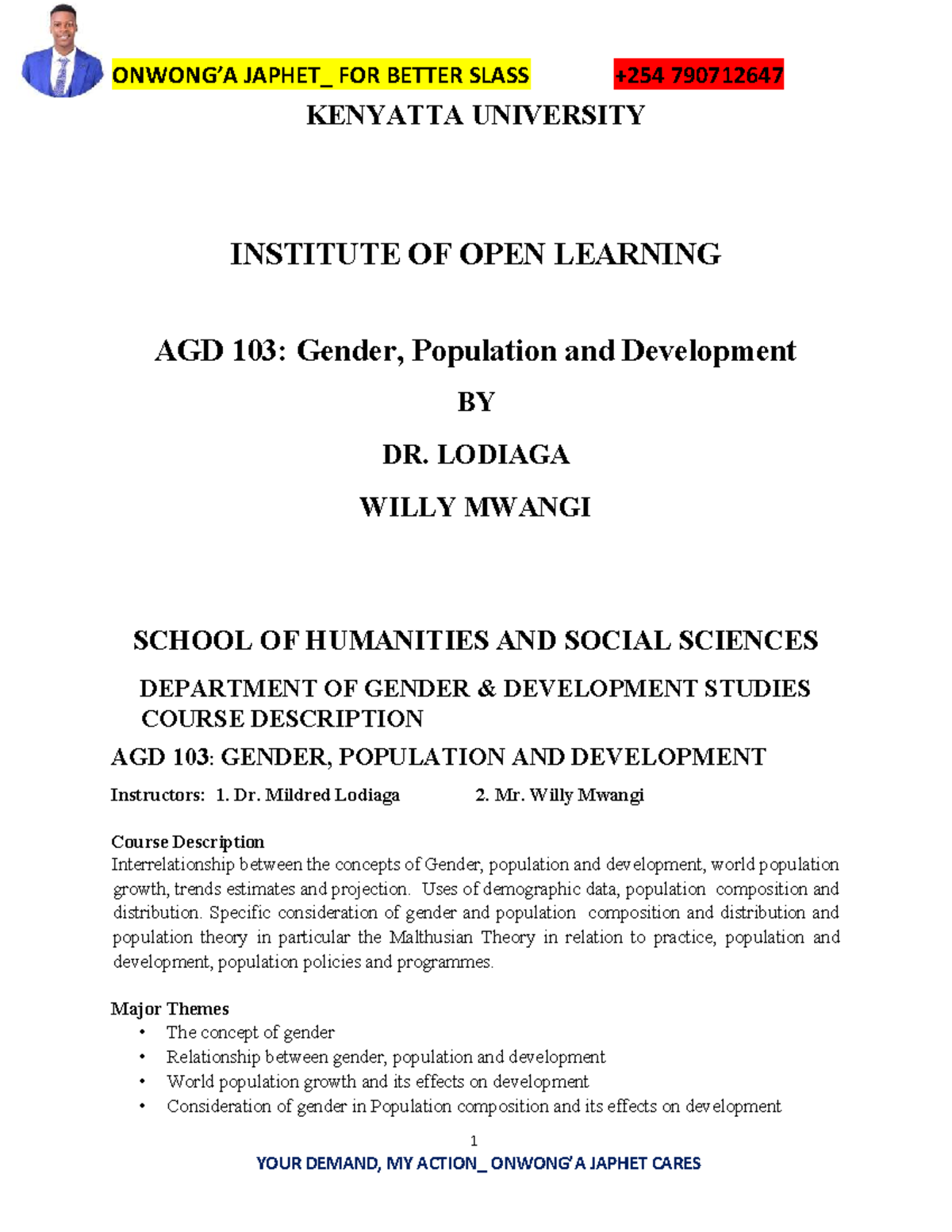 AGD 103: Gender, Population & Development Course Notes - Kenyatta ...