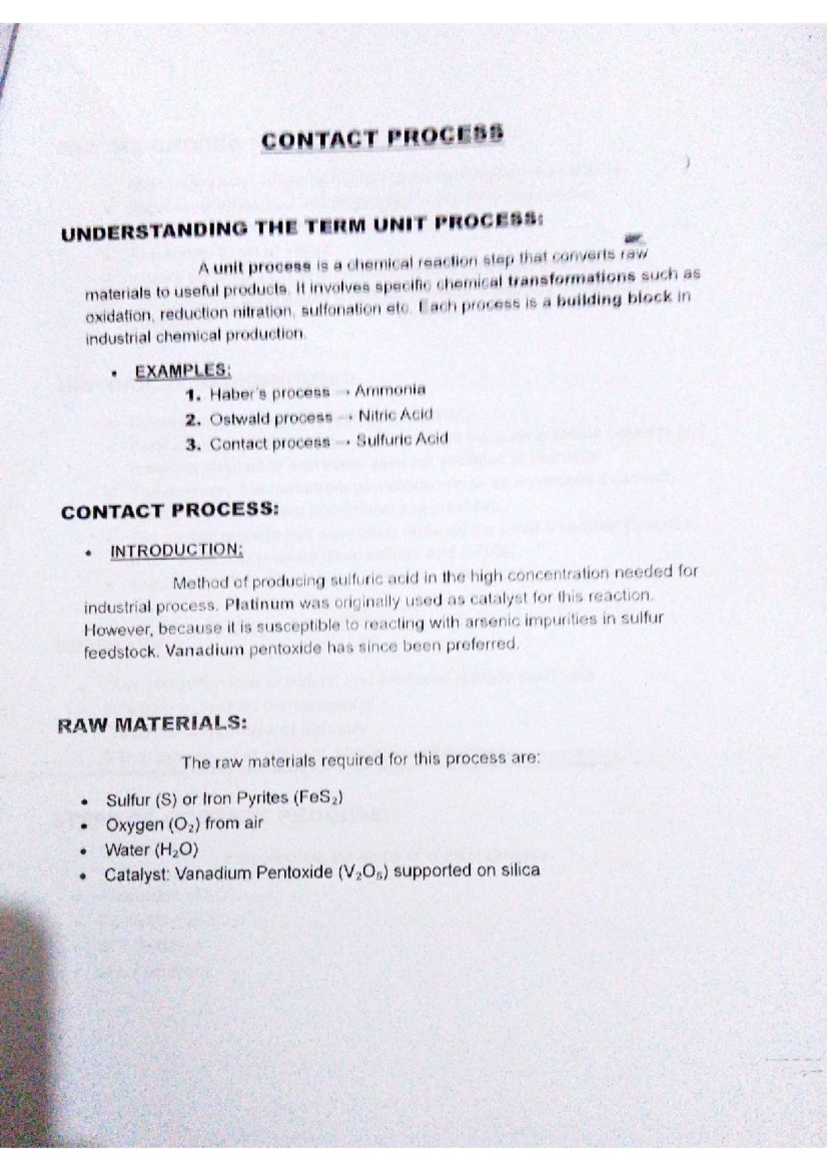 CONTACT PROCESS: Understanding the Production of Sulfuric Acid - Studocu