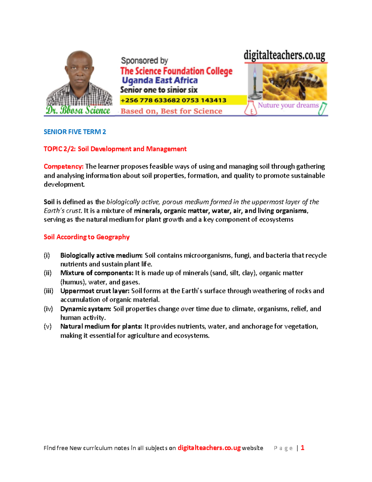A Level Geography Topic 5: Soil Development & Management Notes - Studocu
