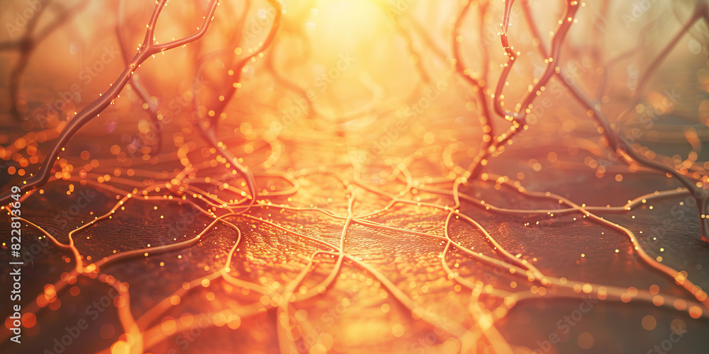 Illuminated Web: A network of glowing strings, forming a complex ...