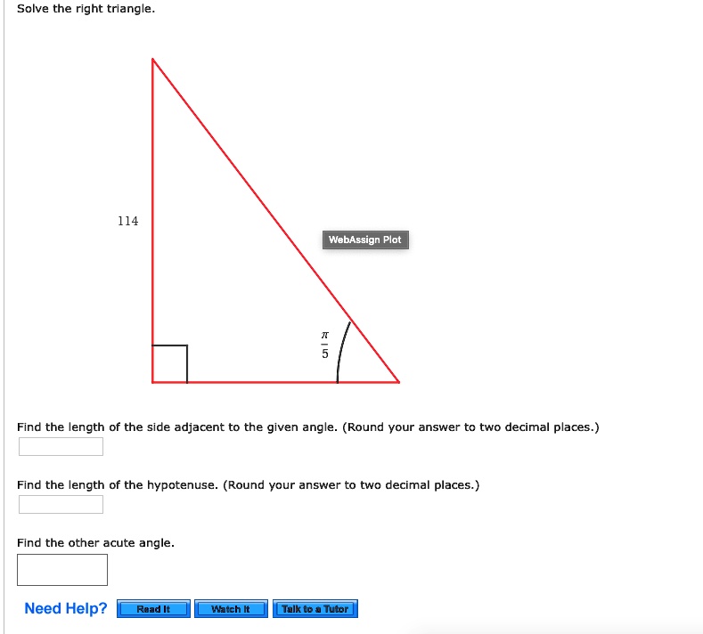 solve the right triangle 114 webassign plot find the length of the slde ...