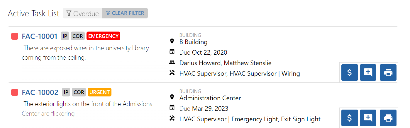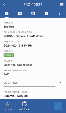 Work Order Tasks Window for WebTMA Mobile – TMA Systems