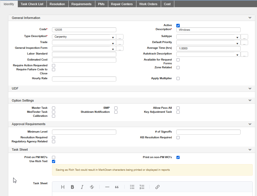 Work Order Identity Tab - WebTMA 7 – TMA Systems