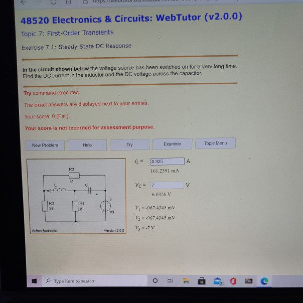 Solved 48520 Electronics & Circuits: WebTutor (v2.0.0) Topic | Chegg.com