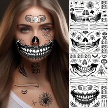 4 Sheets Scary Halloween Face Skull Decals Temporary Tattoos For Men ...