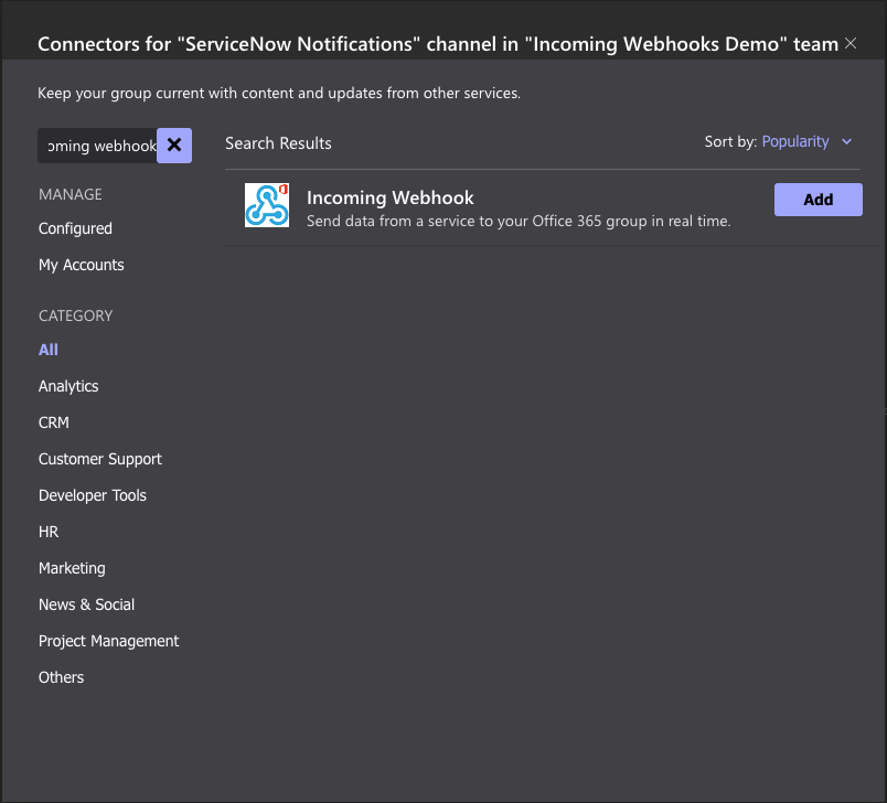 How to configure and use Incoming Webhooks in Microsoft Teams