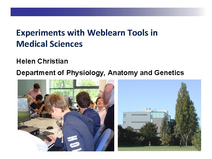 Experiments with Weblearn Tools in Medical Sciences Helen