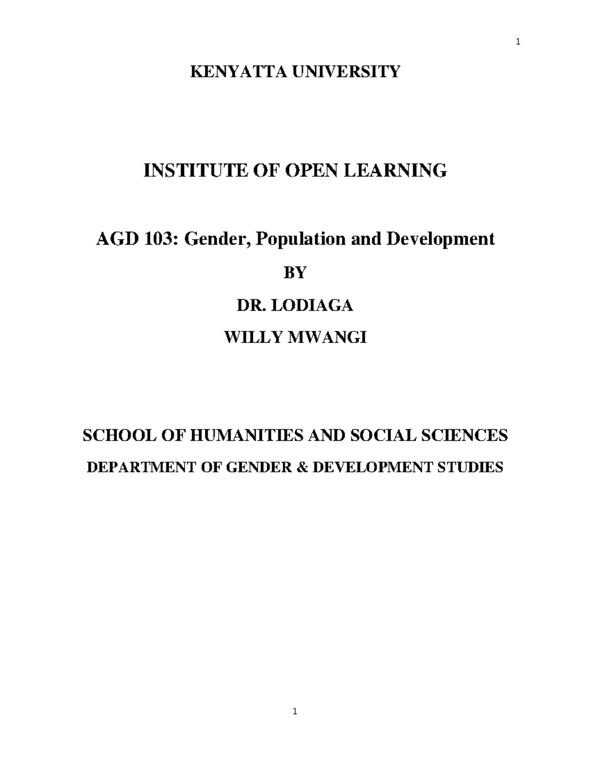 AGD 103: Gender, Population, and Development Course Overview - Studocu