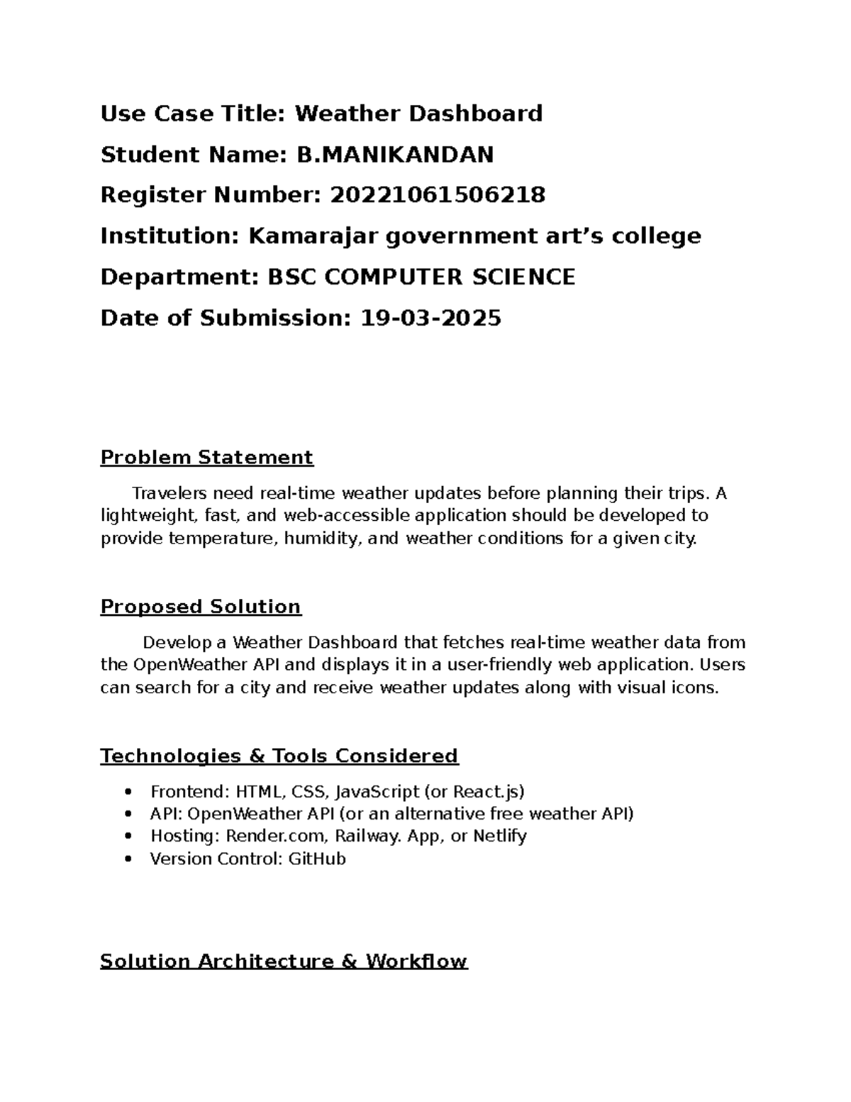 BSC CS Project: Weather Dashboard Development Overview - Studocu