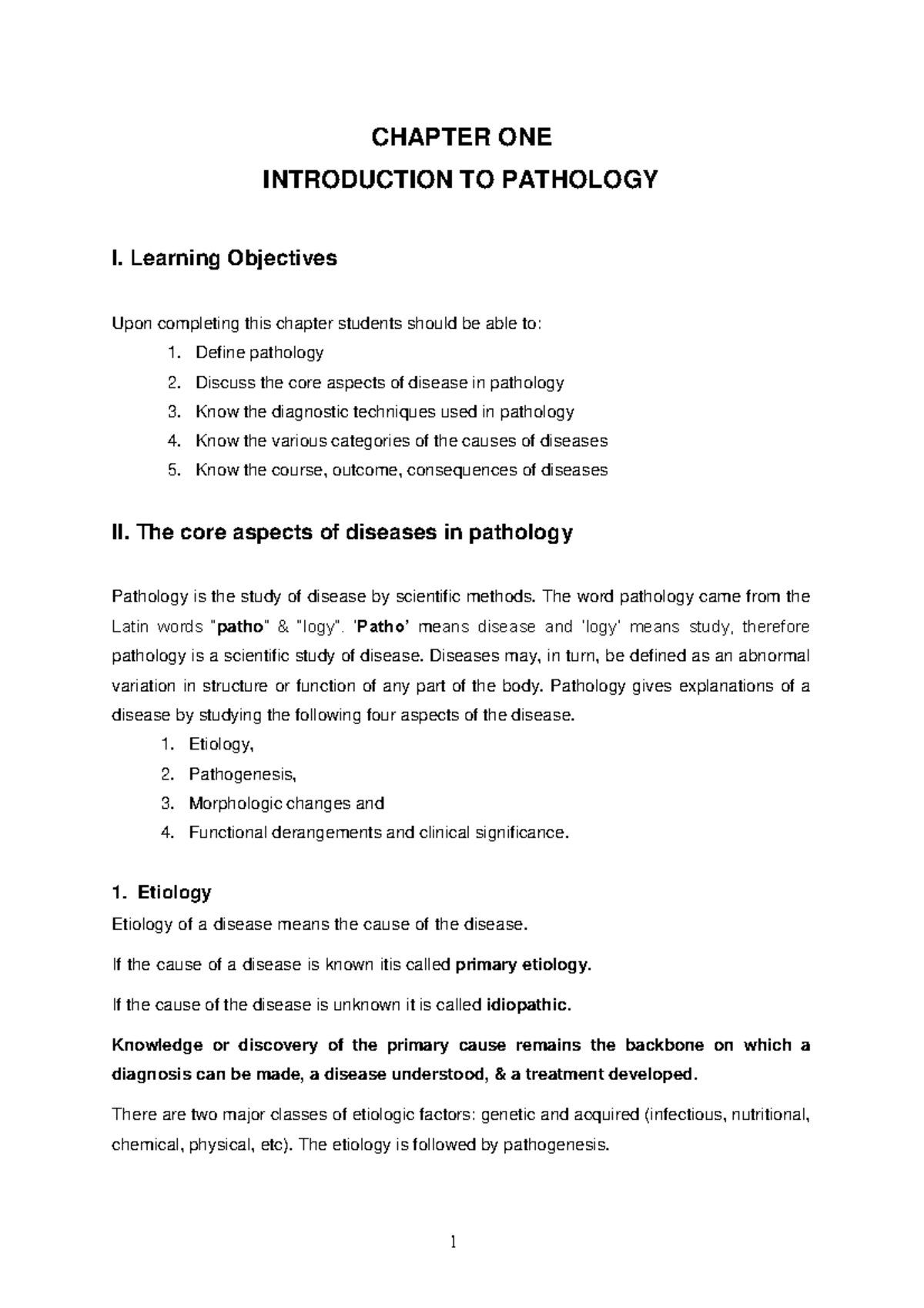 Pathology I: Core Concepts and Diagnostic Techniques Overview - Studocu