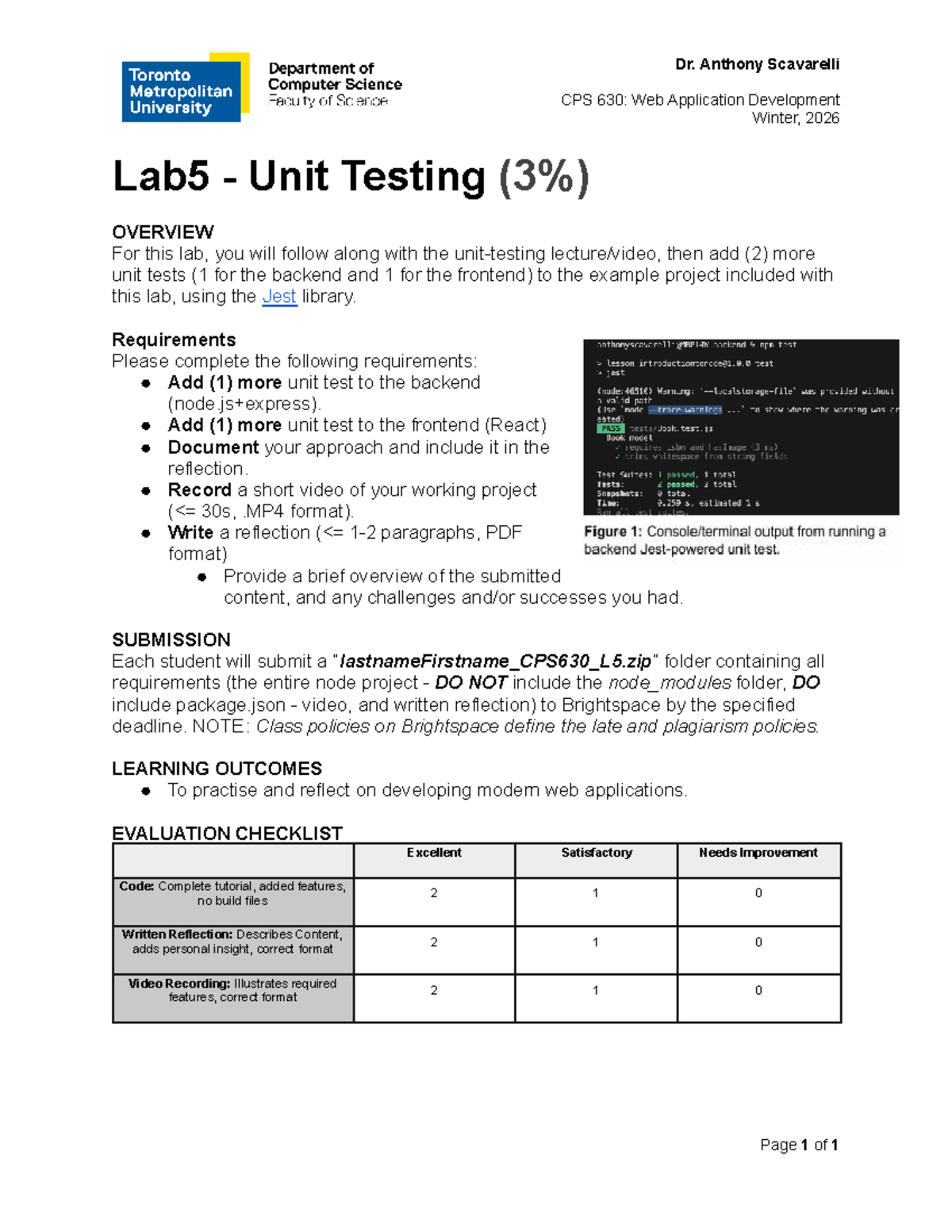 CPS 630: Web App Dev Winter 2026 Lab 5 - Unit Testing Overview - Studocu