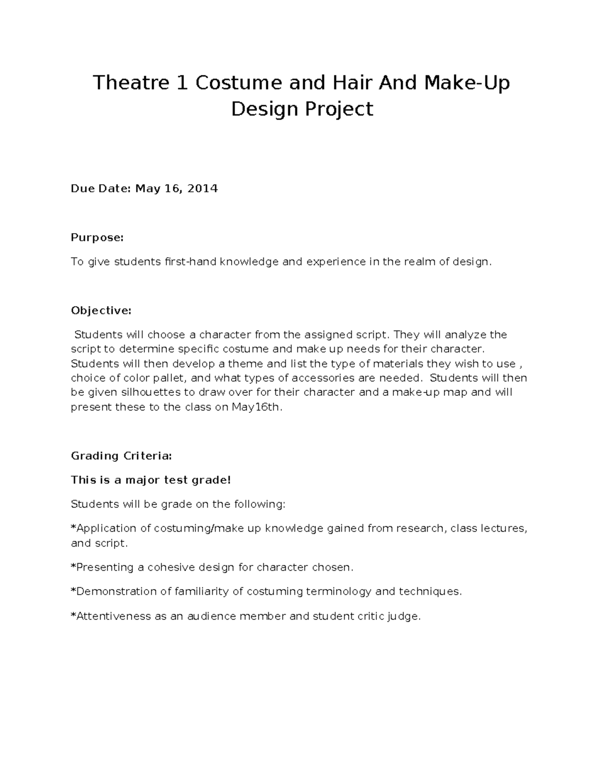 Theatre 1 Costume & Hair Design Project Overview and Guidelines - Studocu