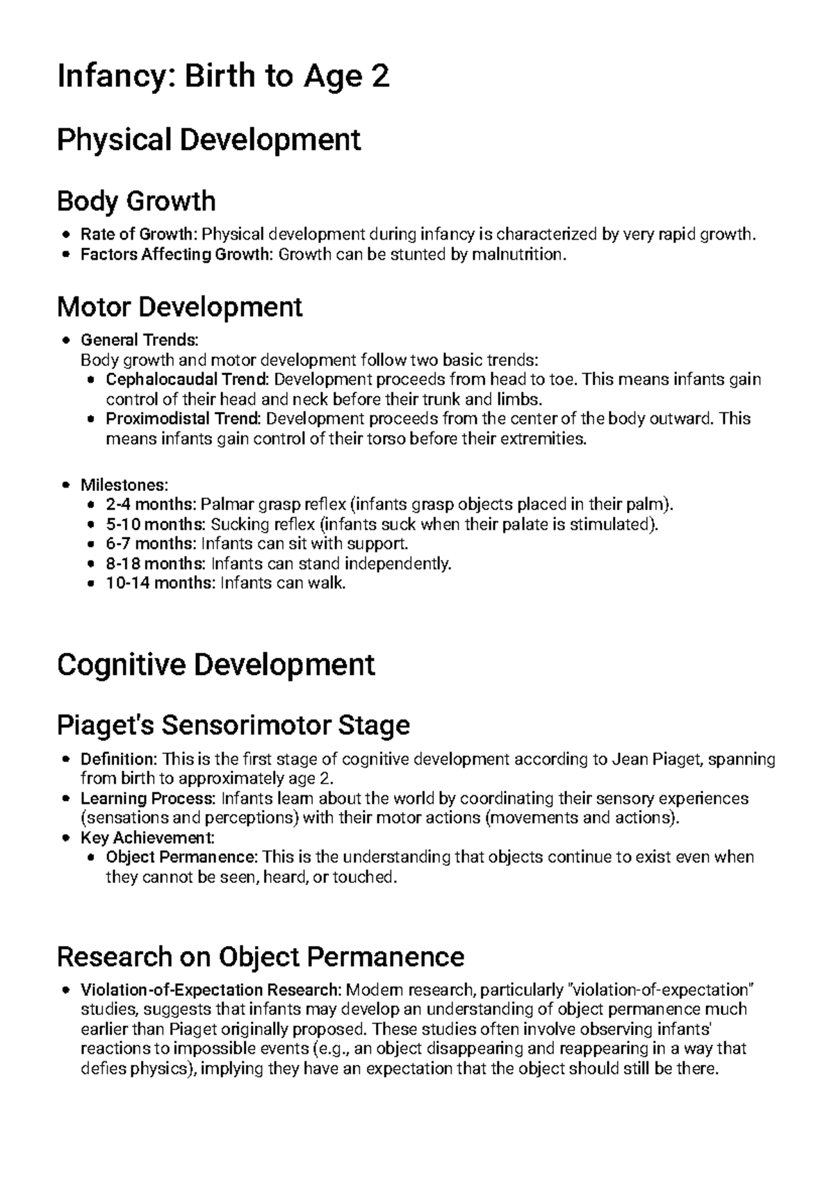 Infancy Development: Birth to Age 2 Overview - Studocu