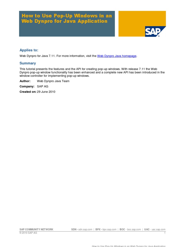 How To Use Pop-Up Windows in An Web Dynpro For Java Application | PDF ...