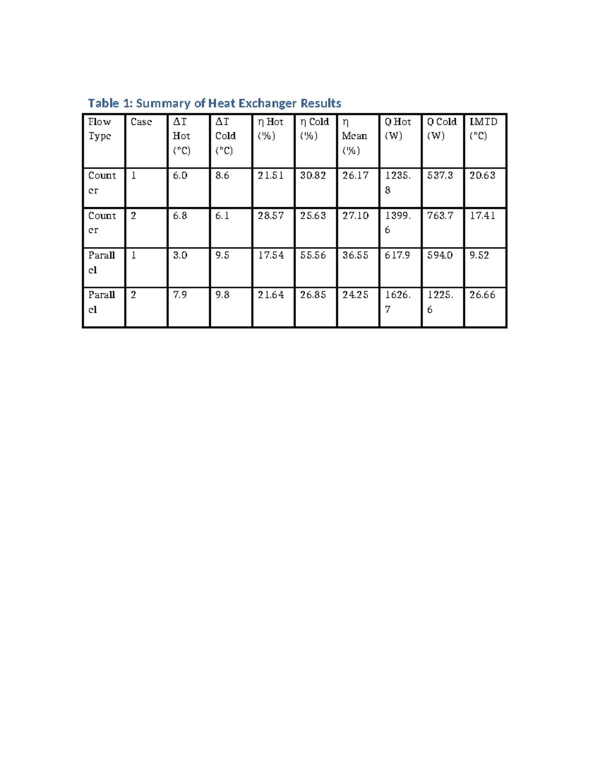 Professional Heat Exchanger Table - Table 1: Summary of Heat Exchanger ...