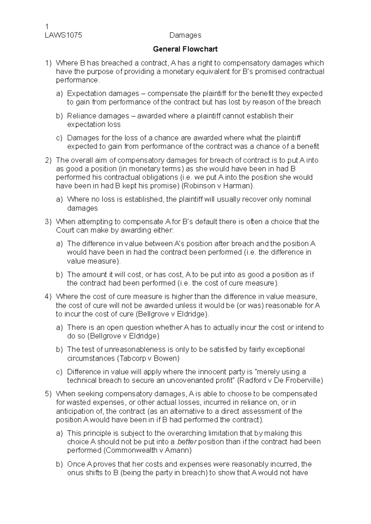 LAWS1075 Compensatory Damages Flowchart and Key Principles - Studocu