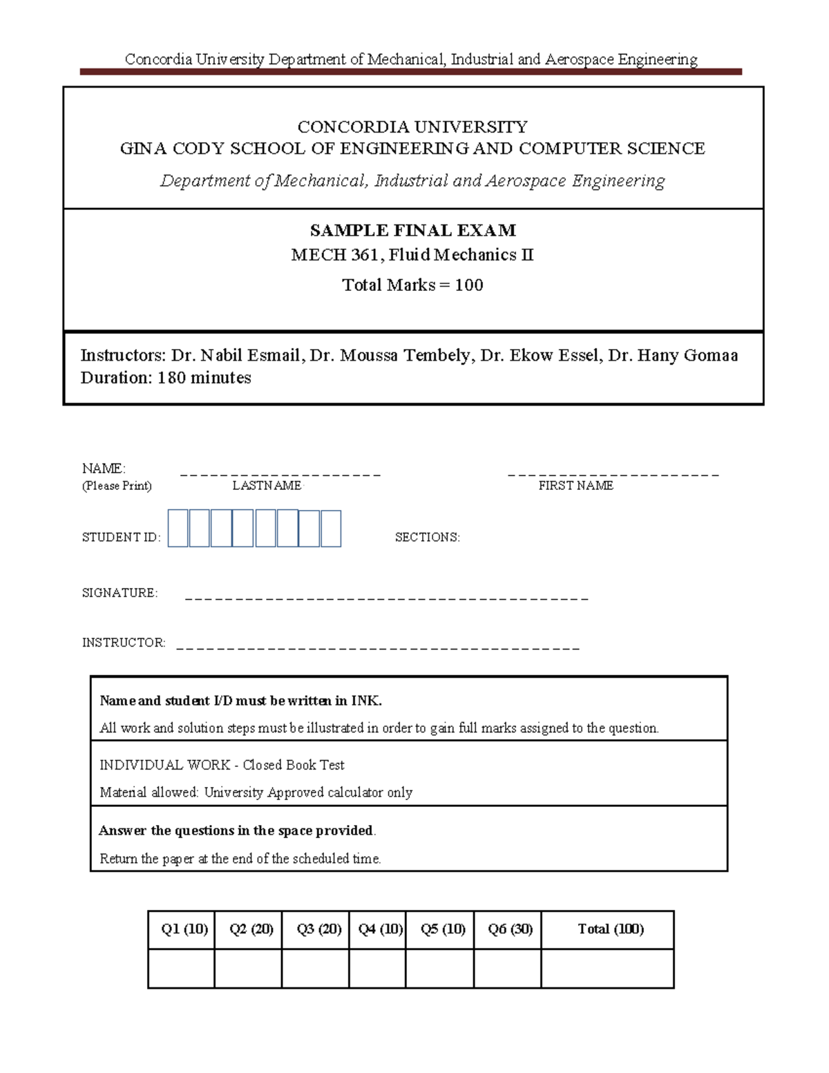 MECH 361 Sample Final Exam - Fluid Mechanics II - Studocu