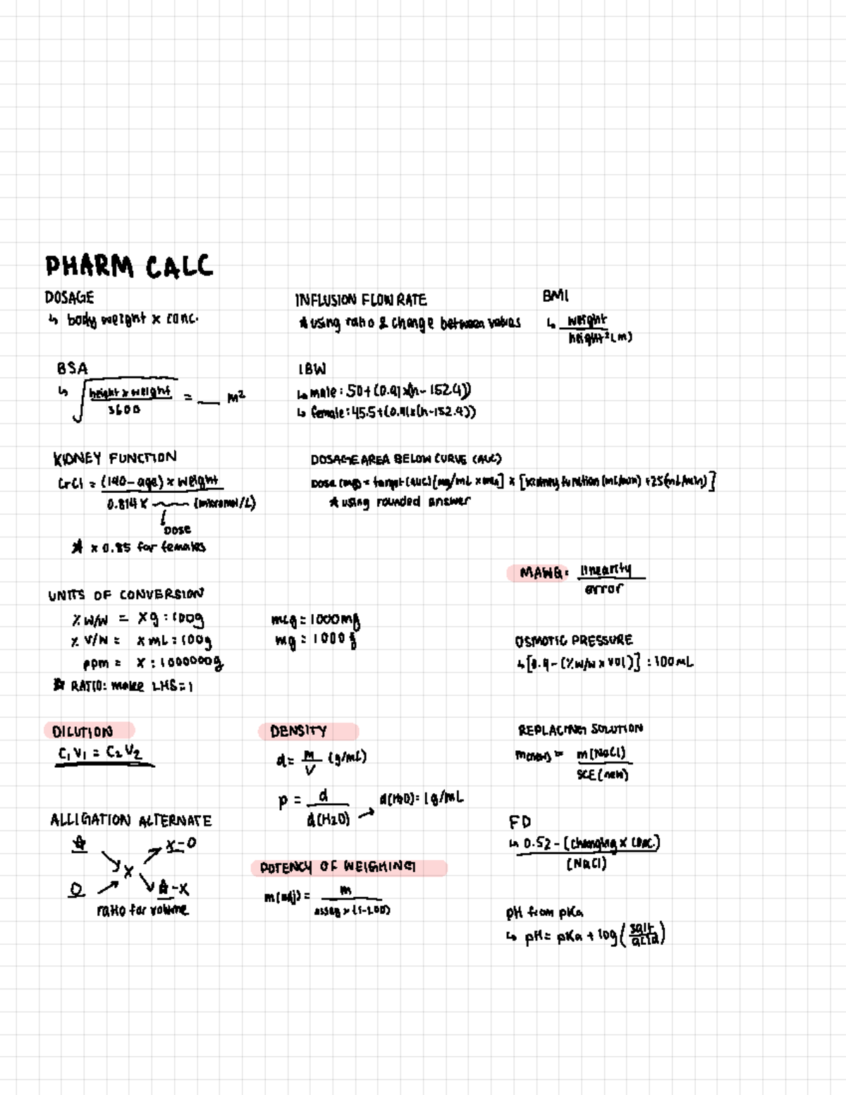 Pharm Calculations: Dosage, BSA, and Infusion Flow Rate - Studocu