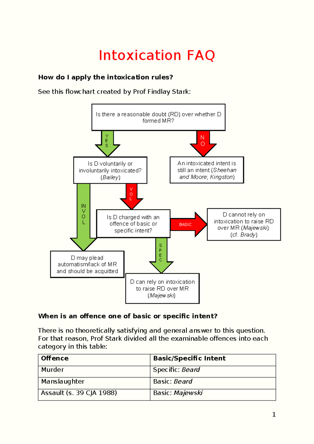 Intoxication Flowchart: Understanding MR and Offence Types - Studocu