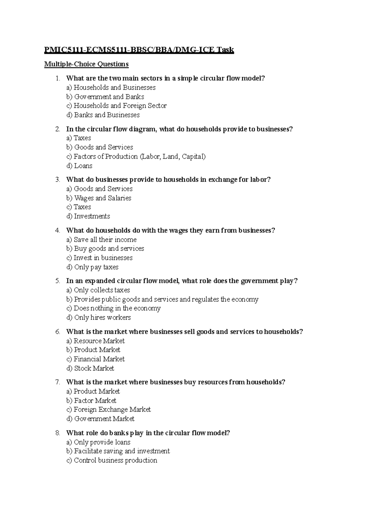 Circular Flow Model - Quiz Questions and Notes - Studocu
