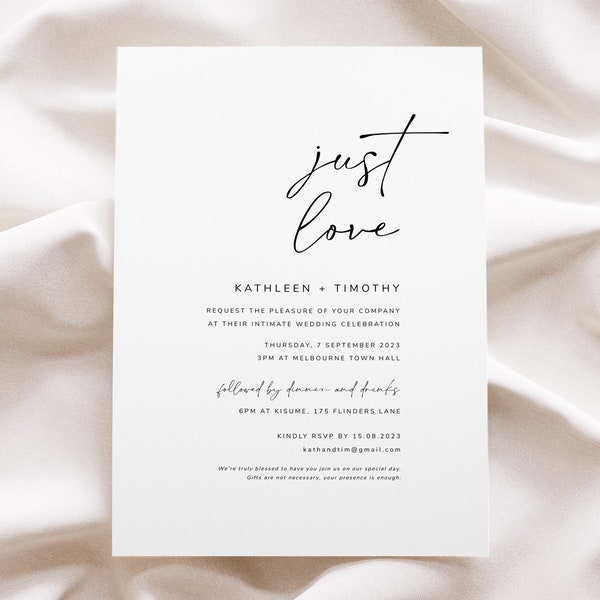 Civil Wedding Invitation Template, Minimalist Modern City Hall Wedding ...