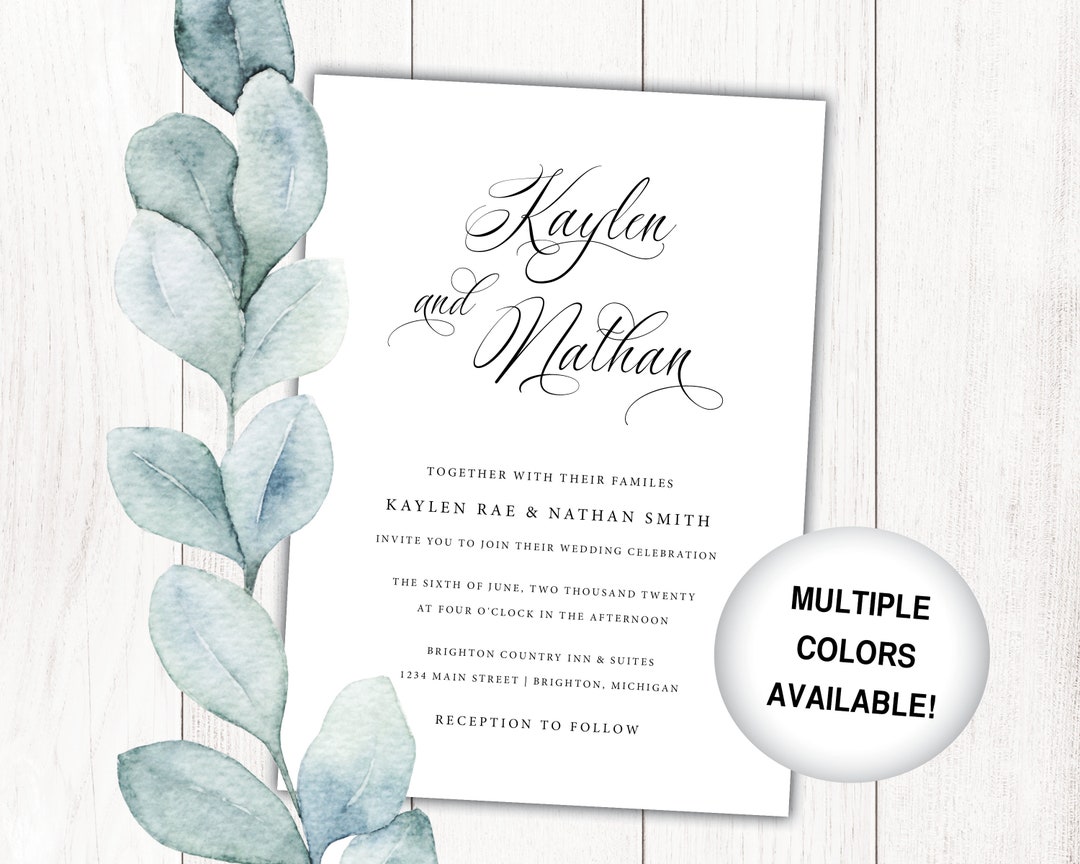 Simple Script Wedding Invitation Set. Printable Wedding Invitation ...