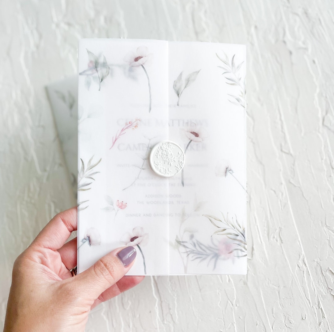 Floral Vellum Jacket, Vellum Invitation Wrap, 5x7 Vellum Wedding ...