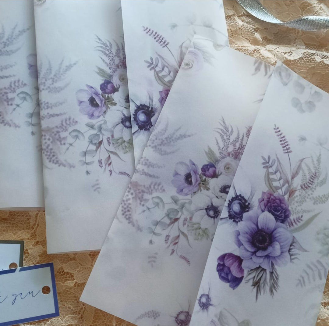 Purple Floral Vellum Wrappers | 5x7 Invitation Jackets | Lilac Printed ...